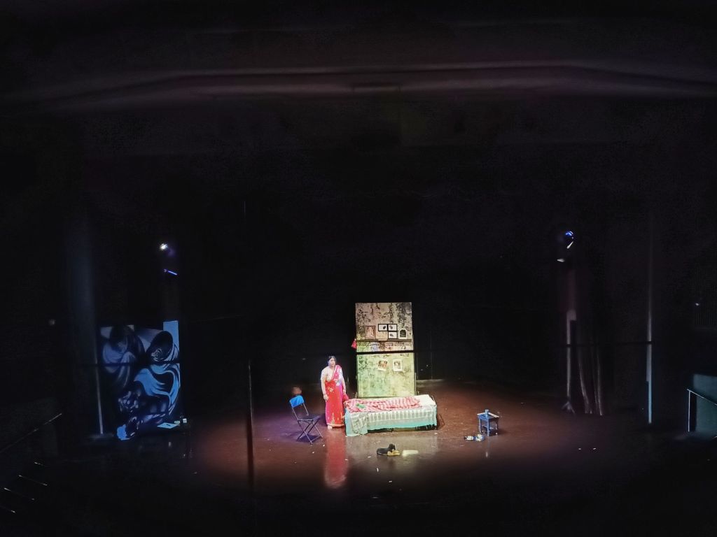 “The Stein Auditorium” of the Indian Habitat Centre is one of the sophisticated theatres in Delhi, that utilises several modern techniques to enhance audience engagement. It was my second time in this theatre. The audience here is mostly elite and I feel that this gap needs to be bridged. This theatre has several spotlights fixed at different angles to illuminate the section on the stage and I must say that the work on lights and sound was excellent during the entire play. The props were minimal with no considerable scene shifts.