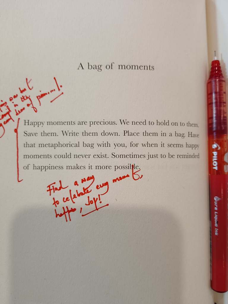 The only thing which I felt missing in this book is ‘direction’ which I think reader will construct by themselves. ‘The Comfort Book’ must be a part of your collection if you ever feel yourself slipping in abyss. This book will pull you up!