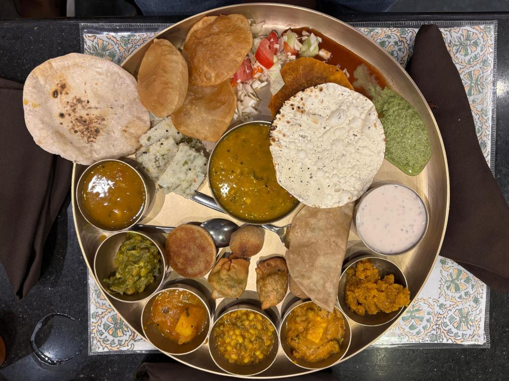 Timings: Lunch (11 AM-2:45 PM) and Dinner (7 AM-10:30 PM); Gujarati Thali @425/-
